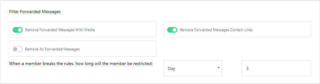 Tele group Manager does not stop at member messages; it also efficiently handles forwarded messages. Enjoy a clean and focused group chat by: