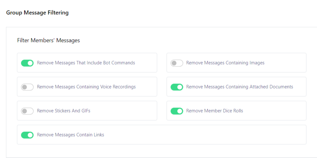 Remove Member Dice Rolls: Avoid spam and irrelevant messages by filtering out member dice rolls.