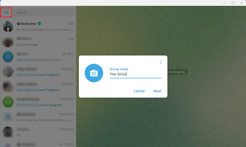 Once you have created the bot and connected it to this application, creating a group is the next step. However, if you already have a group, you can simply skip this step.