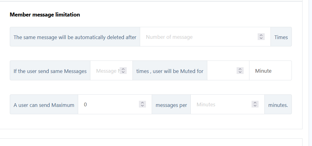 Control Over Message Frequency: Administrators have the flexibility to customize how frequently users can send messages in specific time frames.